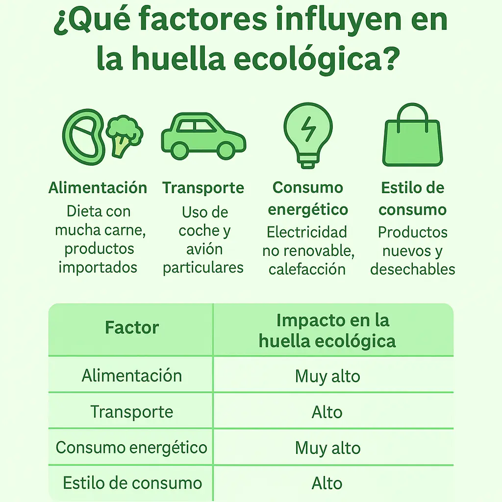 La huella ecológica no es una cifra fija ni aleatoria. Depende directamente de las decisiones que tomas cada día: cómo vives, qué comes, cómo te mueves y qué consumes. Entender estos factores te permite ver qué hábitos aumentan tu impacto ambiental y cuáles puedes ajustar para reducirlo.